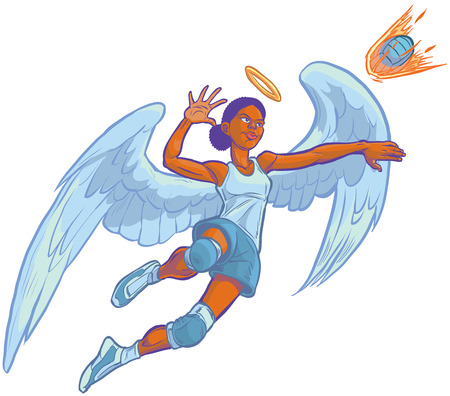 着信をスパイクにジャンプするアフリカ系アメリカ人女の子のバレーボール選手の漫画クリップ アート イラスト提供する火球のように見えます ベクトルでは 均一な色をカスタマイズできます のイラスト素材 ベクタ Image